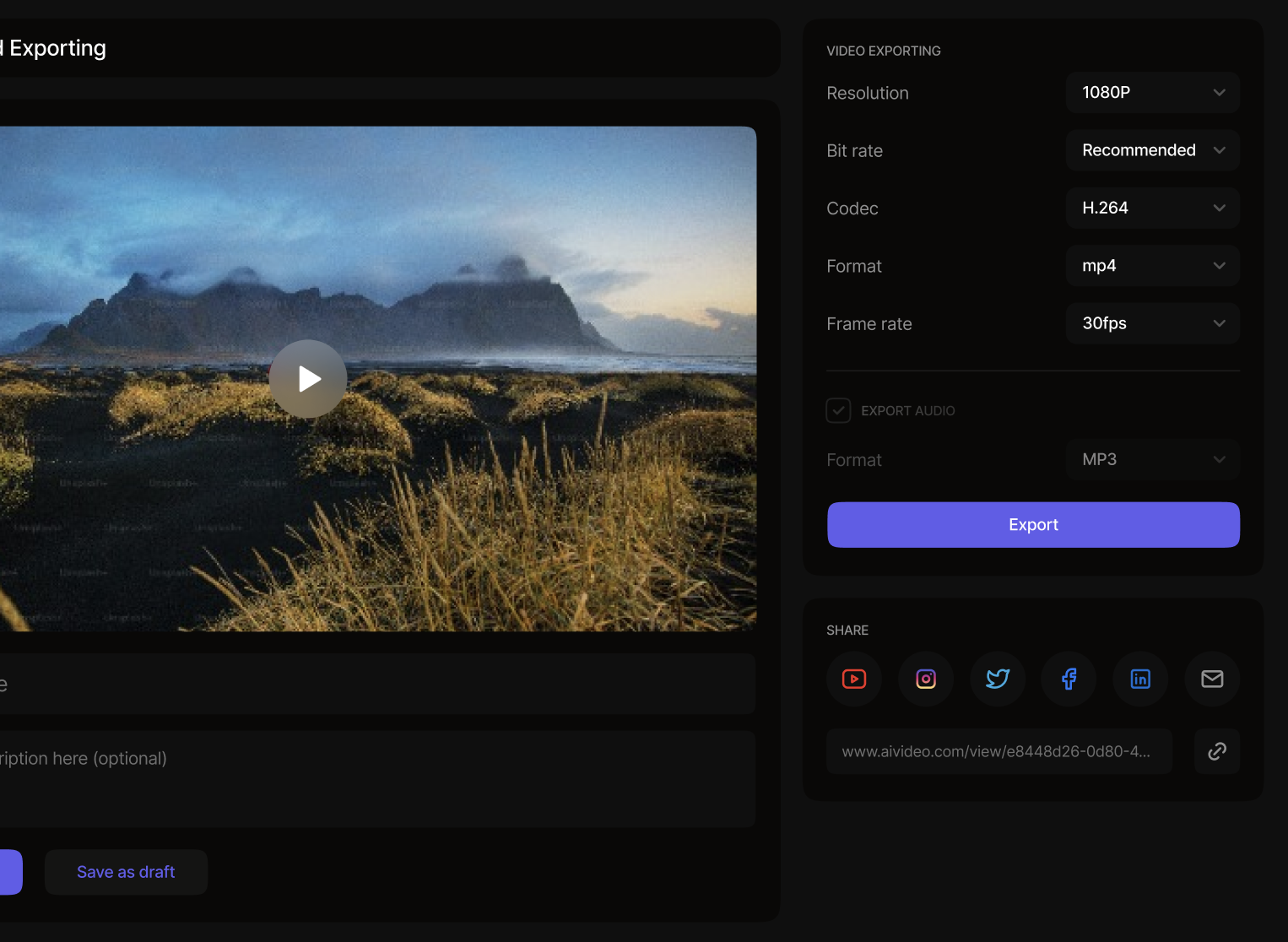 Craft professional videos in minutes and share them across any platform.